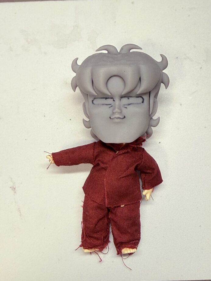 顔が完成しないうちに服を仮縫いしたのは、全体のバランスを見るためです。んー、もっとあたまでかくしたい。これだと、かわいいけど かわいいマスコット人形であって零くんではない。