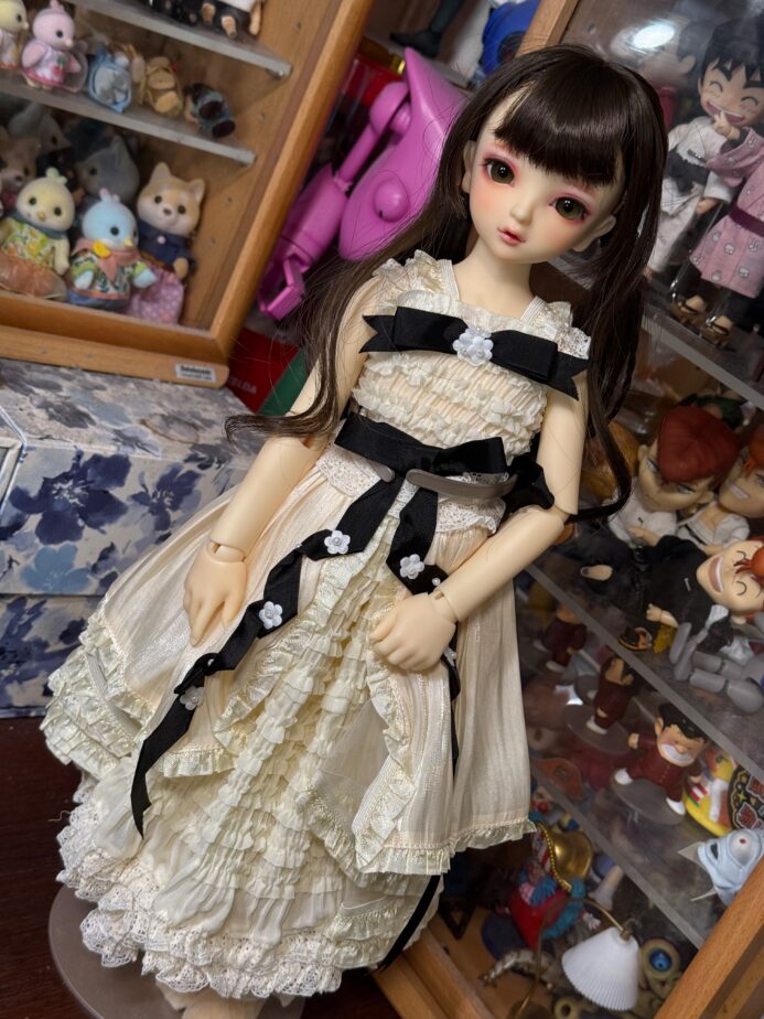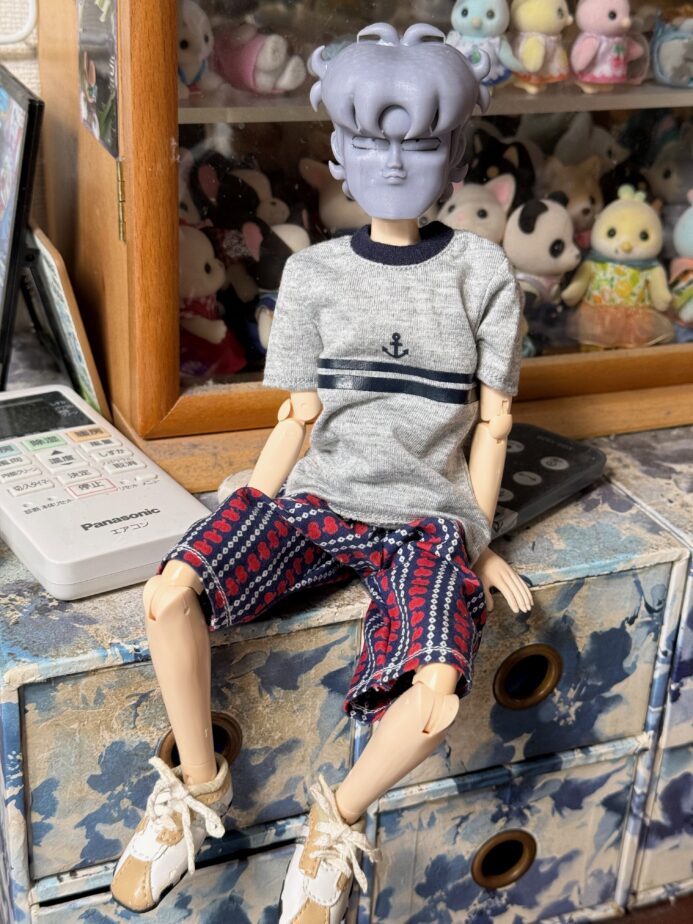 制服づくりは、生地選びから間違えたみたいです。ゴワゴワが良くないと思って薄手にしたけど、ゴワゴワしてないとパジャマになっちゃうんですね。とくにちびくん、ゴワゴワを着せて着太りした状態を基準に作ってある素体だとやっと気づきました。